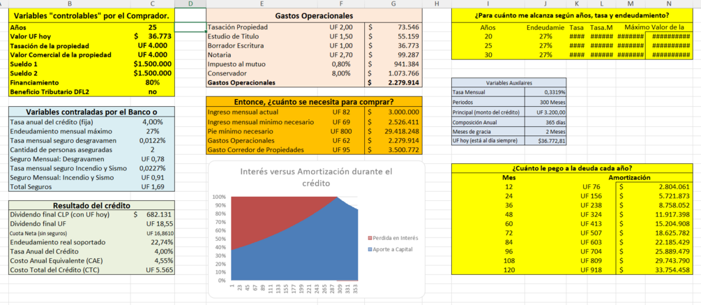 Con esta planilla vas a poder comprender cuánta plata te puede prestar el banco según los ingresos de tu familia, la tasa de interés vigente, la cantidad de años, calcular el CAE, amortización, etc.