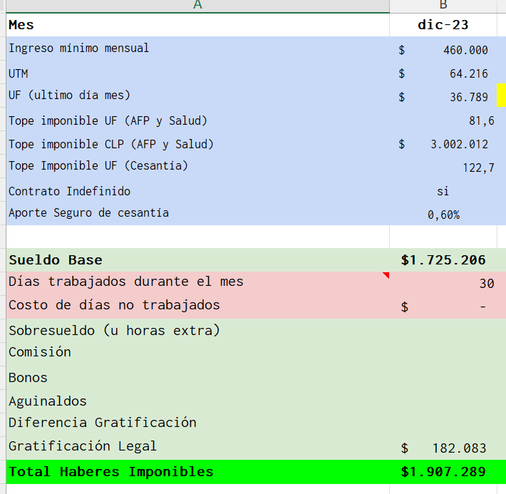 Con esta planilla podrás caluclar una liquidación de sueldo en Chile para el año 2024